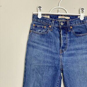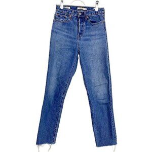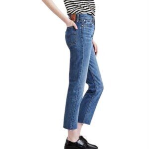 Levi's Wedgie Straight Premium Denim High Rise Cropped Raw Hem Jeans. Medium wash. Raw hem. Cropped length. Button fly. No known flaws.