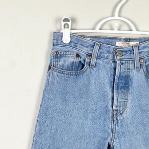 Levi's Wedgie Straight Raw Hem Jeans Light Wash. Ouiji Luxor Empire wash. High rise. Button closure. Slight bit of factory distressing at ankles. Premium denim. Cropped length. Excellent condition. Materials: 100% Cotton. No real stretch. No known flaws.
