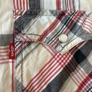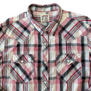Levis Western Wear Button Down Shirt Mens Large Peal Snap Red Plaid