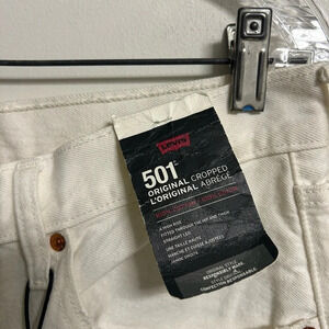 Levi’s White 501 Original Cropped White Ripped Jeans
