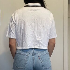 ✨ Classic & Trendy! This Levi’s white collared crop top is the perfect mix of casual and chic. A must-have staple for any wardrobe!