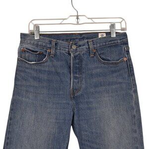 Levi’s White Oak Cone Denim Wedgie Jeans Dark Blue Raw Hem Size 29
