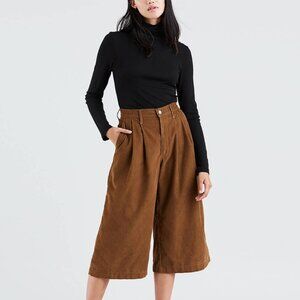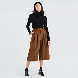 Levi's Wide Leg Pleated Cropped Corduroy Pants in Tan Brown, sz 24