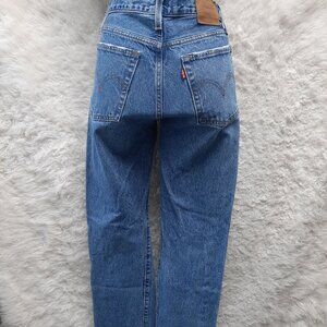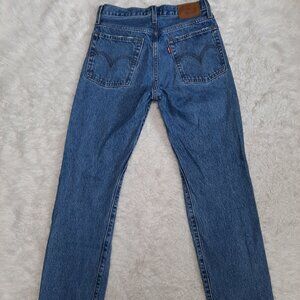 Levi's Woman's Blue Wedgie Straight Fly Buttons Distressed Ripped Denim Jeans 26