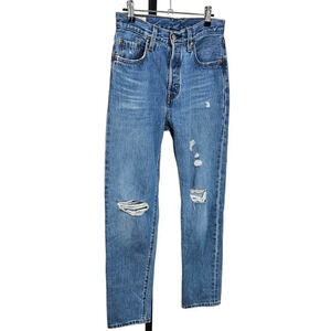 Levi's Womens 501 Straight Leg Distressed Jeans Blue Size 25 Button Fly