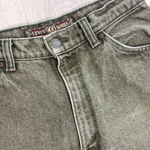 Authentic vintage Levi’s 900 Series high-rise mom jeans in a unique green wash. These jeans feature a flattering high waist, tapered leg, and that perfect worn-in, 90s vibe. Made from sturdy 100% cotton denim. No stretch, true vintage structure. Great vintage condition with some natural fading throughout that adds to their charm.