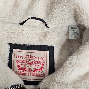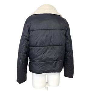 Levi's Womens Faux Shearling Lined Nylon Puffer Jacket, Black, Zip Up, Size S