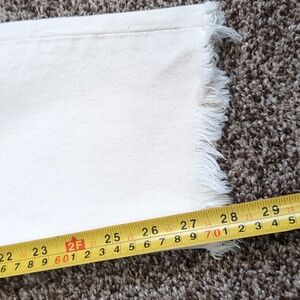 Off white / beige colour. Fringe detail at the bottom of the jeans