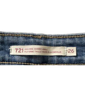 Elevate your style with these stunning Levi's 721 High-Rise Skinny Ankle Jeans in size 26. A must-have for any fashion-forward wardrobe, these pre-owned jeans are in excellent condition and embody a unique bohemian flair.