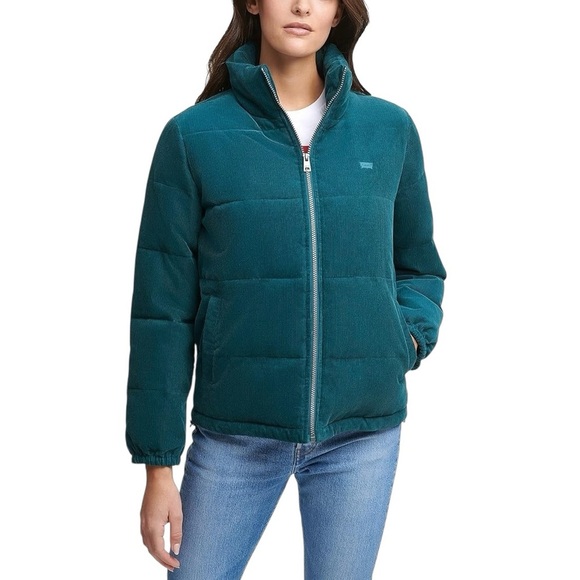 Levi's Women's Zoe Corduroy Puffer Jacket - Teal- Size Medium
