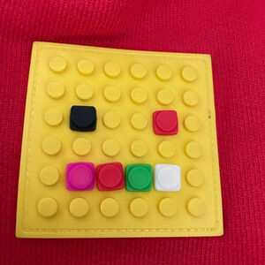 Men’s XL red crewneck sweatshirt with small silicone Lego board on the chest. Small package of dots included. The Lego brand dots are discontinued, but these small silicone dots fit to create patterns on the Lego board as shown.