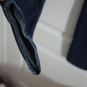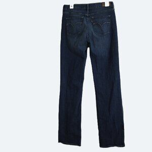 These Levi's Demi Curve jeans in a classic straight leg style are in excellent used condition. They feature a mid-rise waist, medium-dark wash, and a comfortable fit. There is a small, minor thinning spot, as shown in the photo, but otherwise, the jeans are well-preserved and ready for wear. Perfect for casual styling, offering both durability and timeless appeal