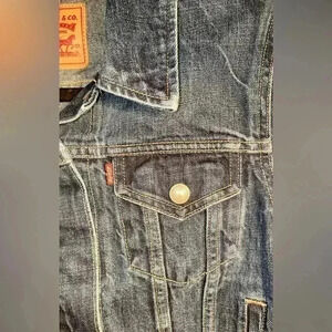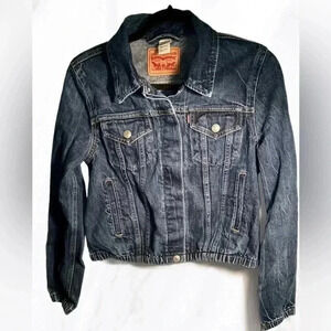 Levi’s classic cropped stylish snap button long sleeve denim trucker jacket M