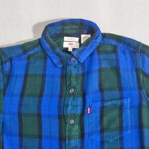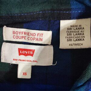 Levi's flannel button down shirt women's size XS blue and green plaid pattern