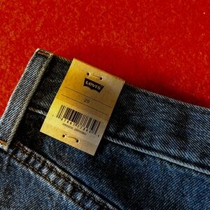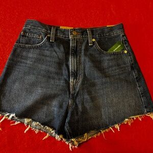 Levi’s high waisted cut-off denim mom short new with tags. Structured 100% cotton denim, high rise style, relaxed hips, zip fly, 5-pocket design. Marked size 29, please see pictures for measurements. This item comes from a smoke free, pets friendly home. Recycled bags/box used when possible. Thanks for watching!