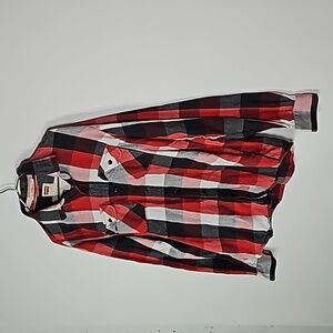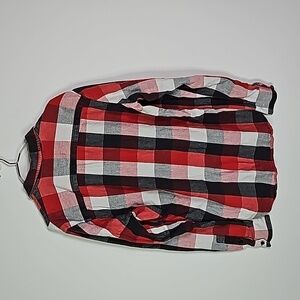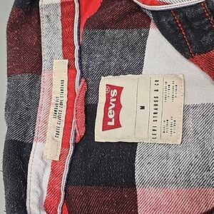 Levi's medium red ans gray plaid button down long sleeve shirt