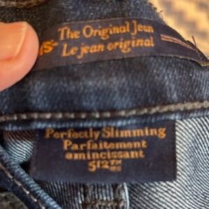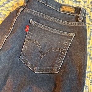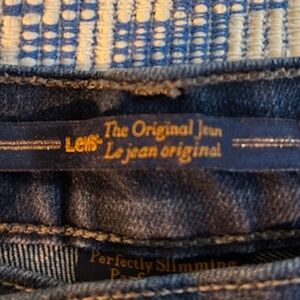 Levi's red tag 512 Perfectly Slimming The Original dark navy jeans. Long inseam. Some stretch (missing fabric tag). No size tag, so please go by measurements. I have listed them as a 32: