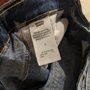 Levi's medium blue wash low rise denim shorts. I believe they are in size 5 junior, but I'm an adult wearing sizes 4-6 and they worked great for me :) Worn a handful of times, but are in great condition. From a pet free and smoke free home.
