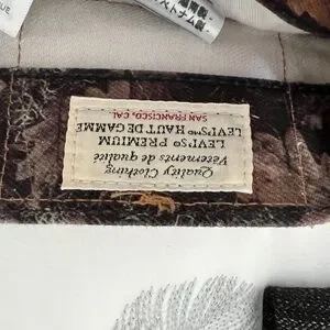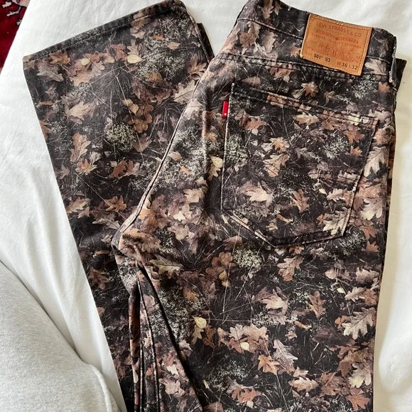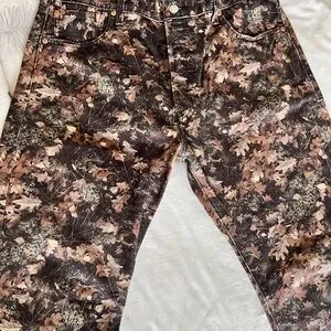Brand new. Extremely rare style. Levi's jeans with a nature-inspired pattern. Features earthy tones.