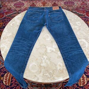 Here are a pair of Levi’s 501 straight leg 100% cotton denim jeans in very good preowned condition featuring classic 5 pocket styling and button fly.