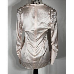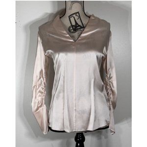 Lewit Satin V-Neck Ruched Silk Blouse, Shell Pink Women's Size XS