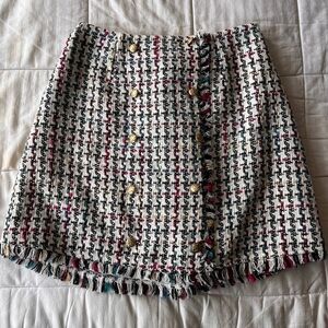 Leyden Tweed Houndstooth Raw Edge Skirt XS Multi