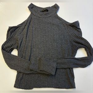 Lez a Lez Gray Cold-Shoulder Ribbed Knit cropped Sweater women's size Small