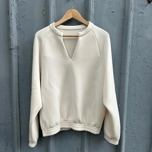 Relaxed yet polished. This comfy sweater is crafted with lush, cozy CLOUDLUX® fabric derived from recycled fishnets and is accented with a flattering V-cut and adjustable hem. Your skin will stay dry with its brushed comfort and sweat-wicking properties.