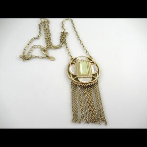 Lia Sophia COMPASS Necklace Rhinestones Gold Tone Chain Fringe 36"