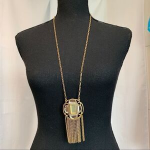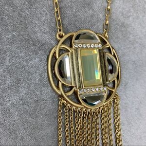 Rhinestones and goldtone clear mirrored gem jewels in a chained tassel fringe pendant