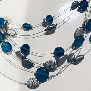 Lia Sophia Caspian Sea 7 strand Turquoise/Silver Bead Necklace
