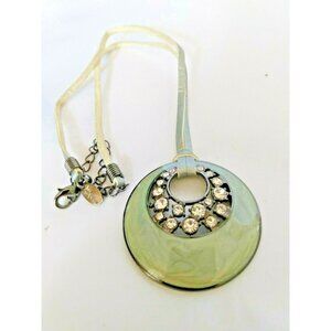 Lia Sophia Enamel polished pendant with crystals - Leather necklace (14") -both pendant & necklace signed