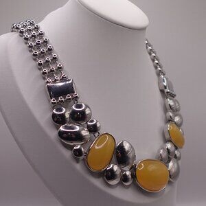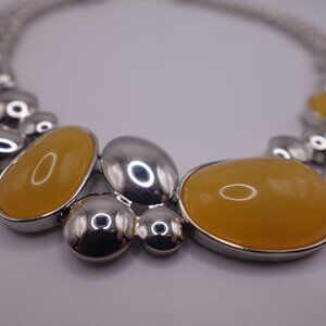 Lia Sophia Silver-tone Yellow cloud burst Statement Necklace. Approximately 18" Long with 3" extender and lobster closure. The necklace is approximately 29mm at its widest point. Signed.