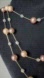 This exquisite Lia Sophia necklace showcases a sophisticated blend of gold, beige and brown hues. Long station necklace with clasp that can be worn long or doubled or tripled around the neck. Looks beautiful when worn layered. Lovely neutral tones that will elevate any outfit without overwhelming your ensemble—simple yet classy! The necklace is adorned with spherical glass pearls and contrasting smaller faceted iridescent spacer beads, creating a harmonious and elegant design.