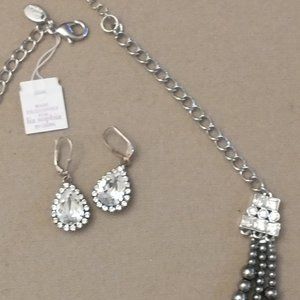 Lia Sophia blingy necklace (NWT) and earrings (worn once)