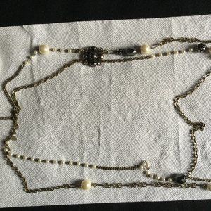 It is a Lia Sophia multi-strand long necklace 42", pre-owned, one stone is missing, please check the pictures.