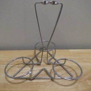 Libbey Glass Condiment Jar Trio w/Metal Lids & Metal Stand Vintage MCM