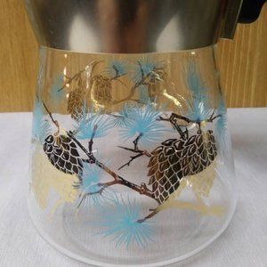 Libbey Percolator Pinecone by David Douglas, Aqua and Gold Libbey Coffee Pot