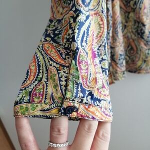 Liberty London Fabrics Colourful Paisley Pleated Partial Button Blouse Large