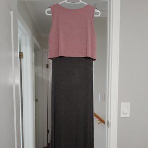 Liberty Love Large Pink and Grey Long Summer Dress. Super comfy. One piece but looks like two pieces. Faux Top is pink with grey stripes and bottom is grey. Total length is 60 inches measured from shoulder to bottom of dress. Hardly worn so in excellent condition.