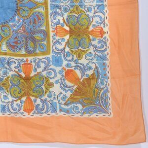 Liberty of London Orange and Blue Silk Scarf - Ornate Floral Very Good