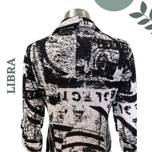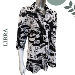 Libra Graphic Black & White Tunic Button-Up Shirt | Made in Canada | Size XS