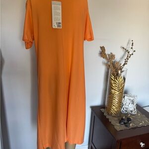 Bright and stylish orange dress perfect for any occasion. Enjoy comfort and elegance with this vibrant piece. Great for vacation as it is extra comfortable like T-shirt material.