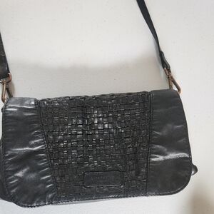 Liebeskind Berlin Sheep Leather Woven Shoulder Bag Crossbody Purse Black Boho