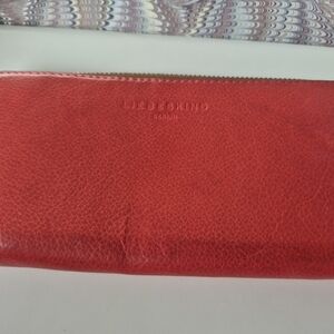 Stylish red leather wallet by Liebeskind. Features a sleek design with a zipper closure.veey good condition.