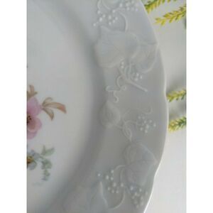 Beautiful porcelains plate with roses picture in center and raised pattern on rim