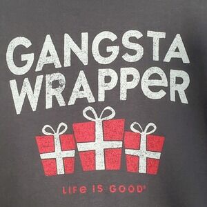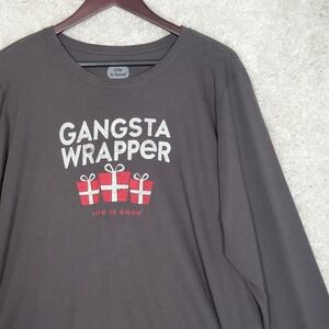 Life Is Good Men Gangsta Wrapper Shirt Size XL Long Sleeve Gray Casual Christmas