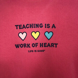 Life Is Good Sweatshirt Pink M “Teaching Is A Work Of Heart” Long Sleeve Graphic