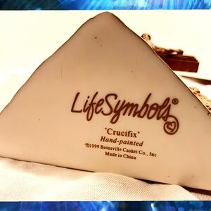 Title: Life Symbols Crucifix Sculpture by Batesville, 1999, Hand-Painted