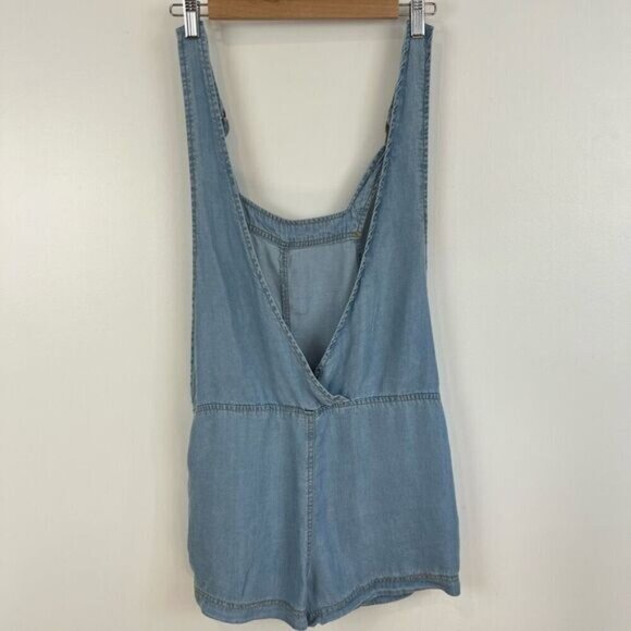 Life in Progress Women XS Blue Overalls Romper Shorts Adjustable Peasant Pockets